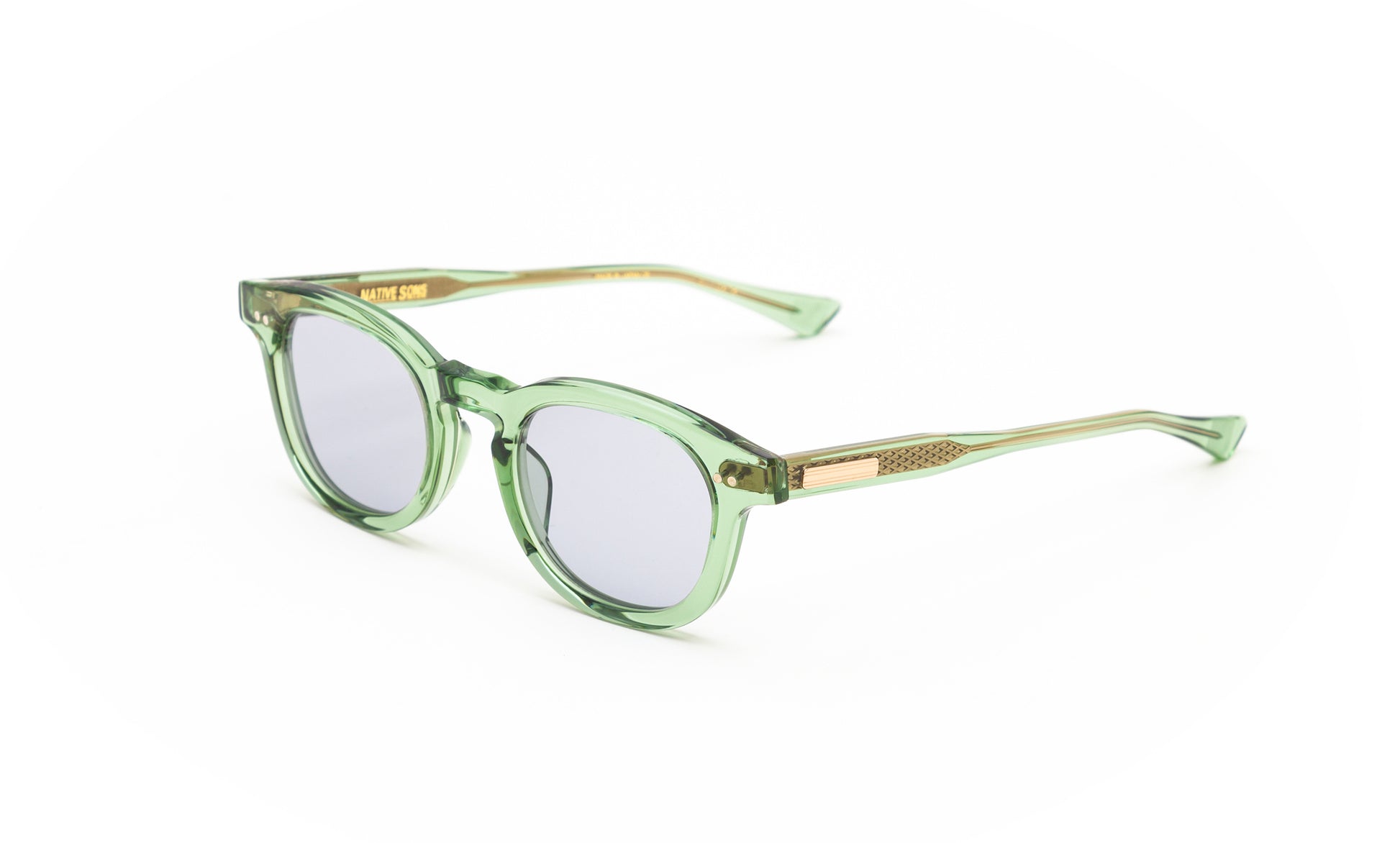 - Signature grooved temple plates inspired by vintage hi-fi stereos