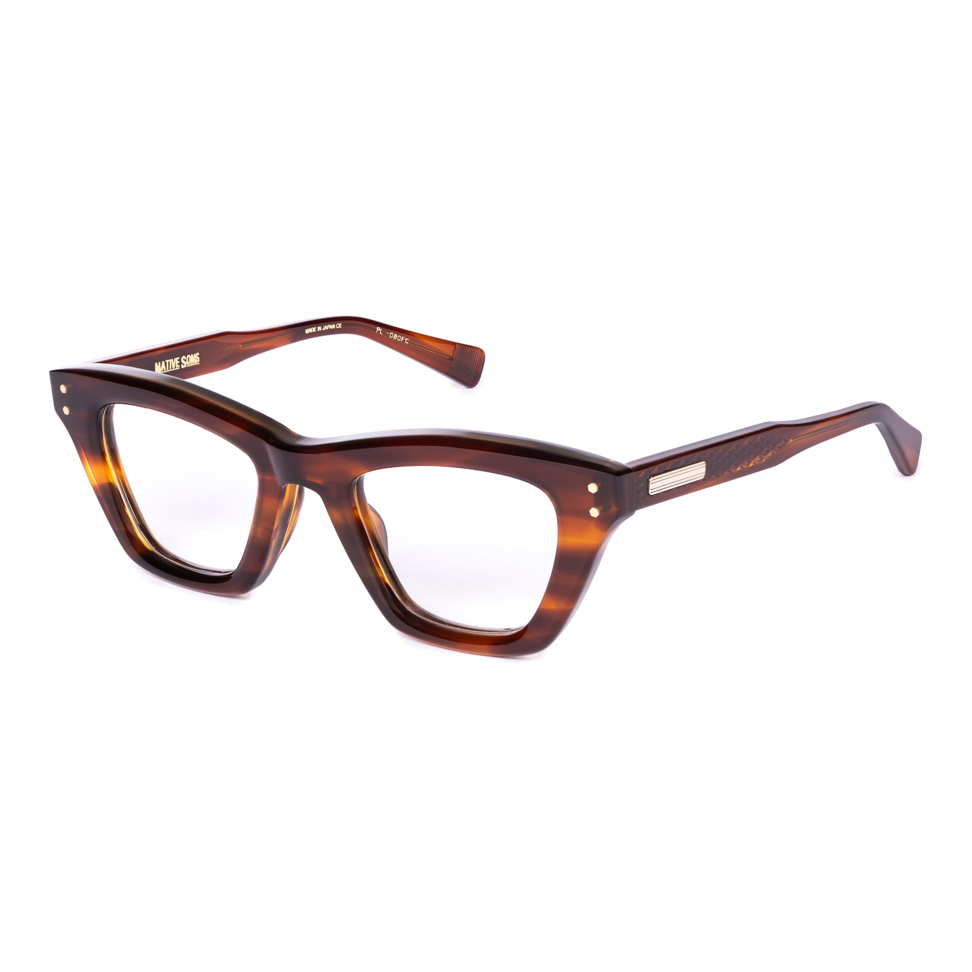 100% handmade in Japan utilizing the highest quality materials. Acetate is cotton oil based, easy to clean, adjustable by any optician. All metal frames are high grade titanium with 16K Gold or Silver plating.