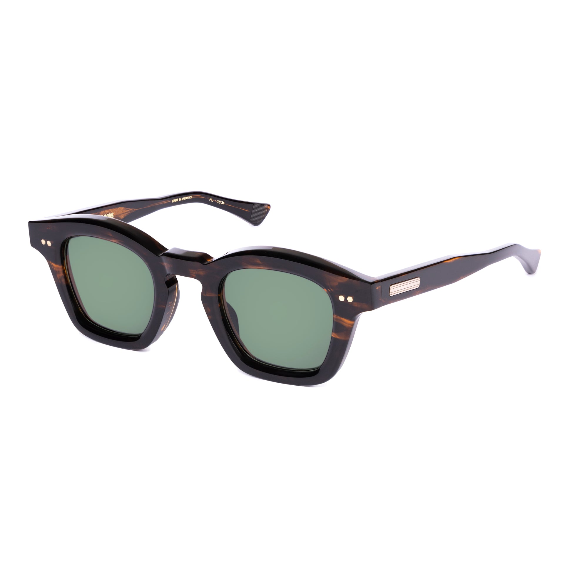 100% handmade in Japan utilizing the highest quality materials. Acetate is cotton oil based, easy to clean, adjustable by any optician. All metal frames are high grade titanium with 16K Gold or Silver plating.
