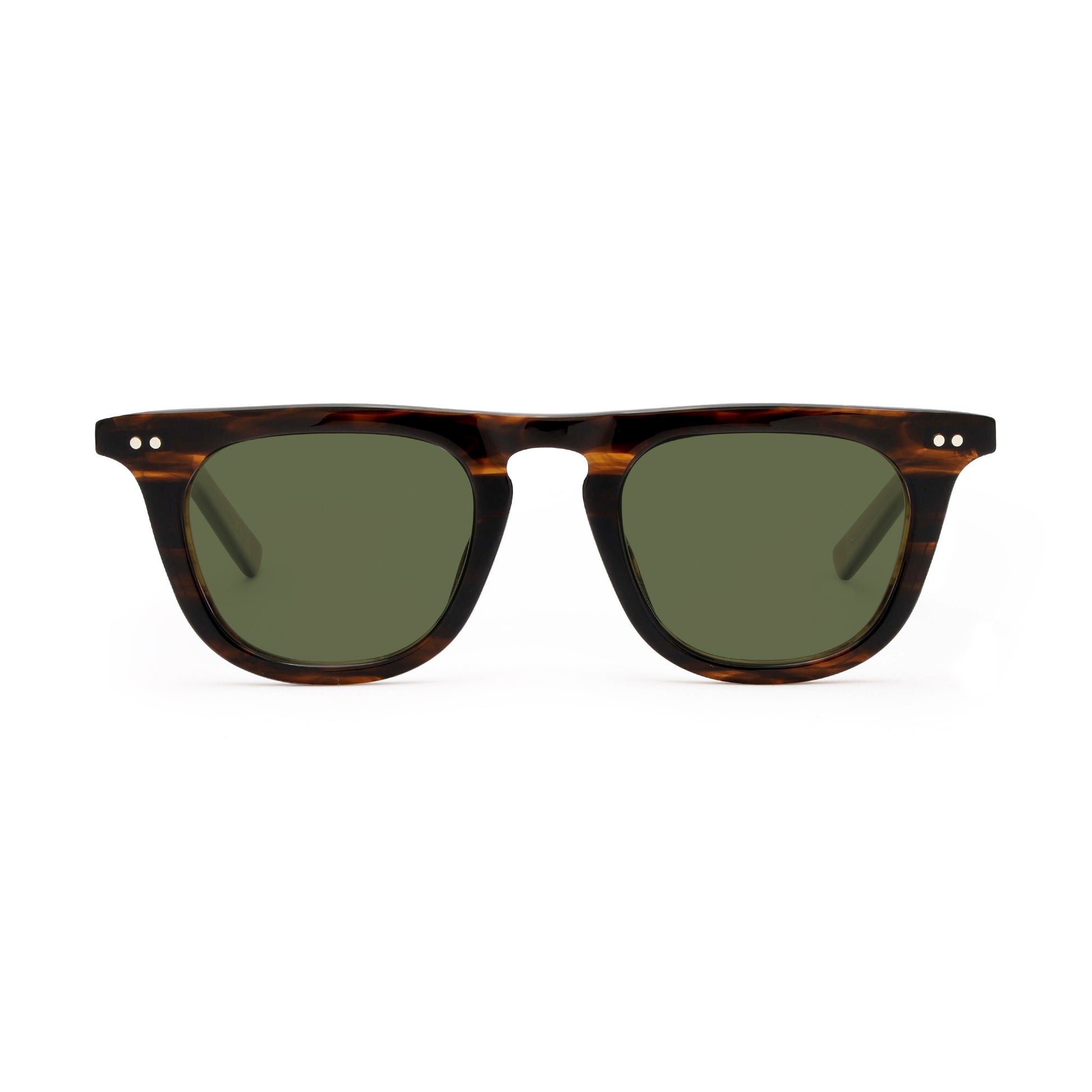Electric and unpredictable the energy in a packed concert hall before a life-changing set. Straight as an arrow across the top, with a subtle dip and a keyhole-shaped nose at the center. Edgy and minimal, this sharp frame contrasts sublimely with the contours of the face.