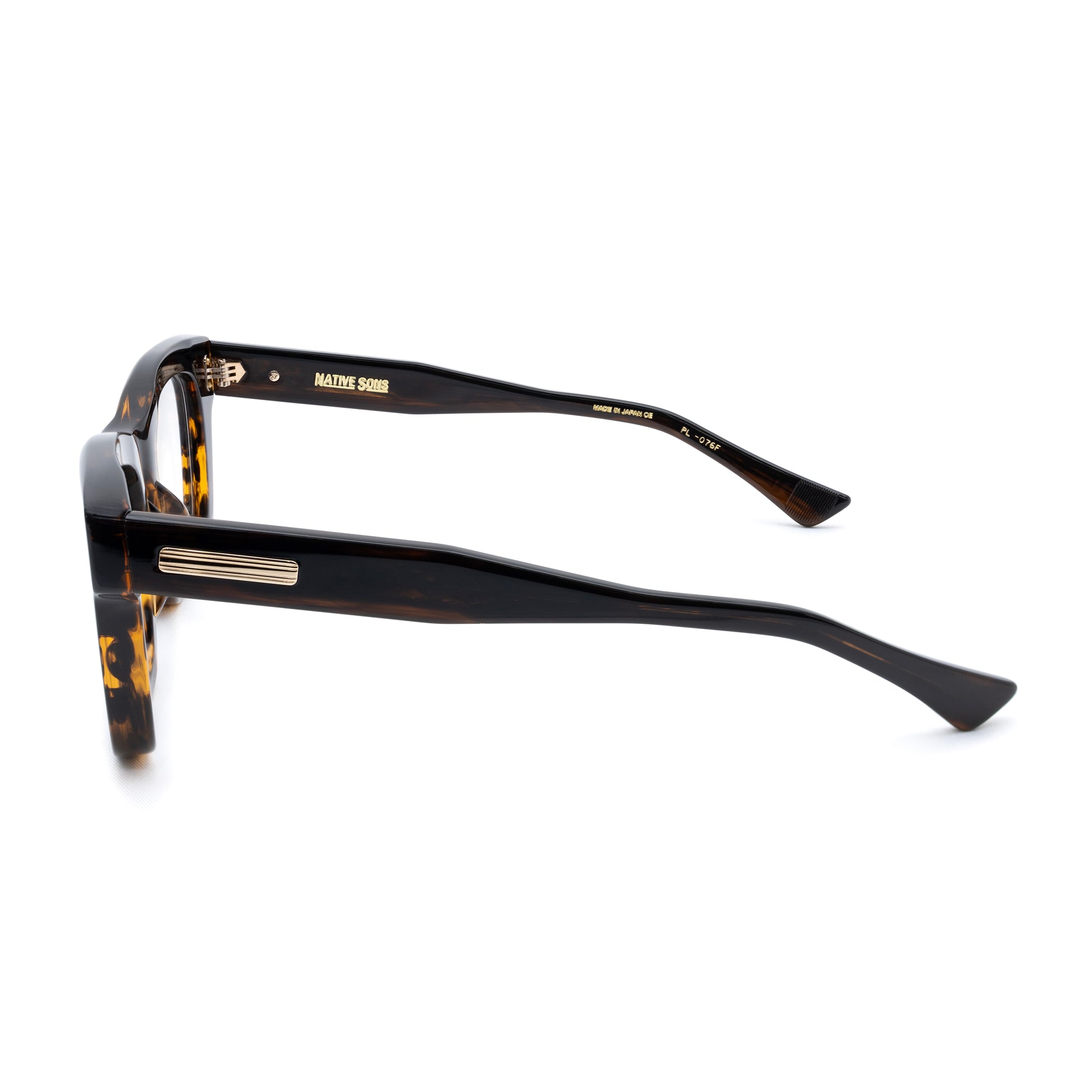 The temple starts bold and square at the connection and tapers down smoothly to the ear area.