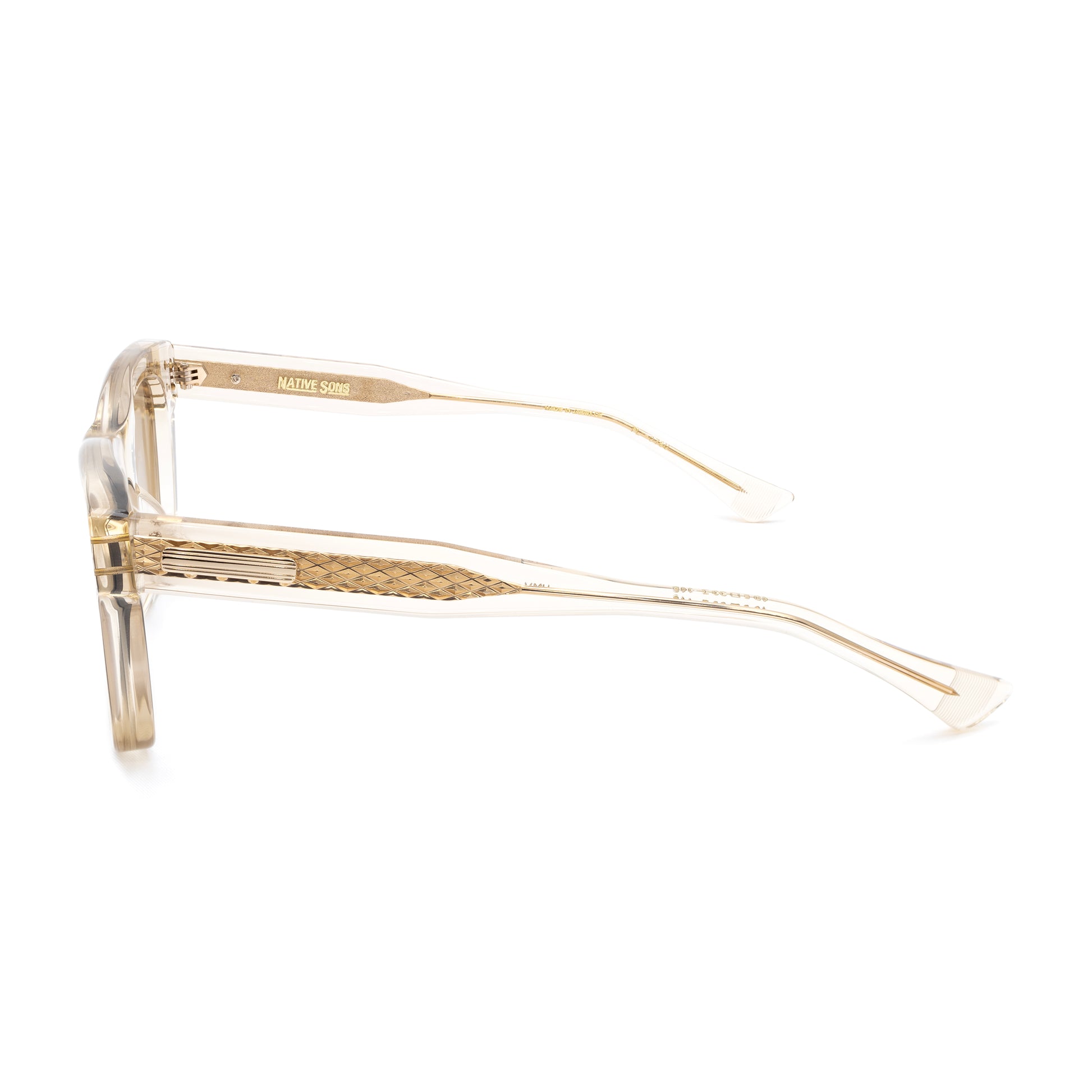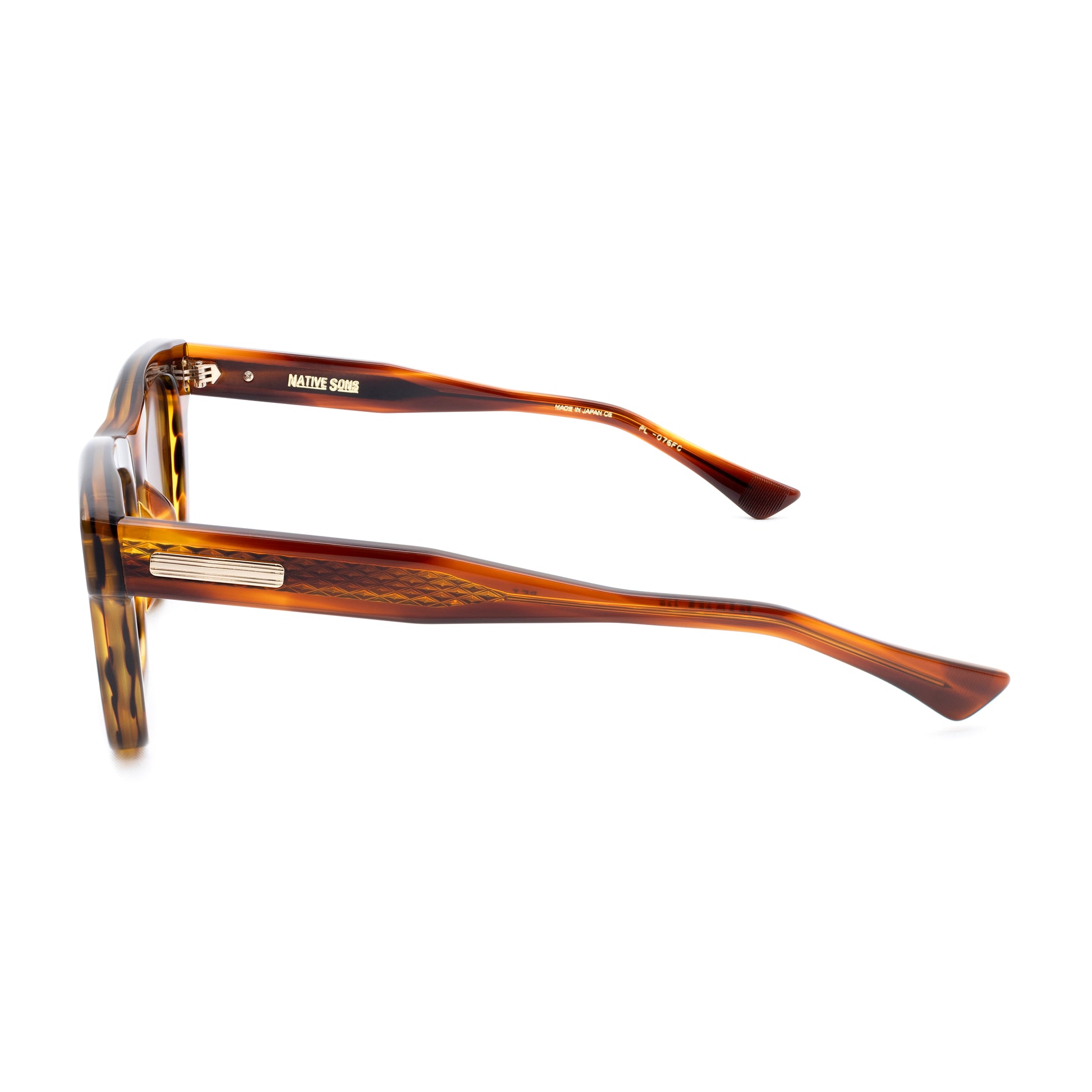 The top bridge is a subtle sweeping line skived beautifully down to the squared temple connections with vertical double hex rivets.