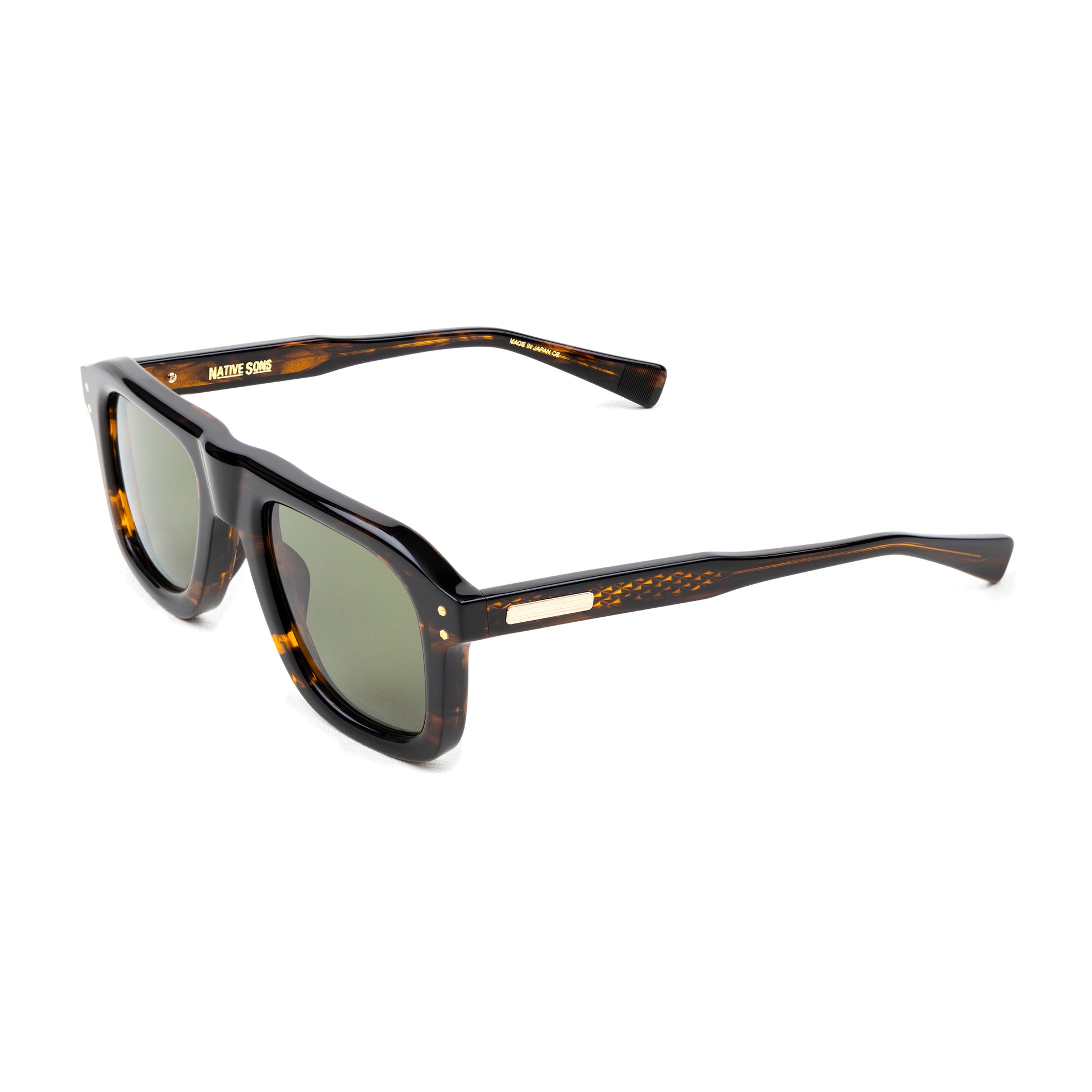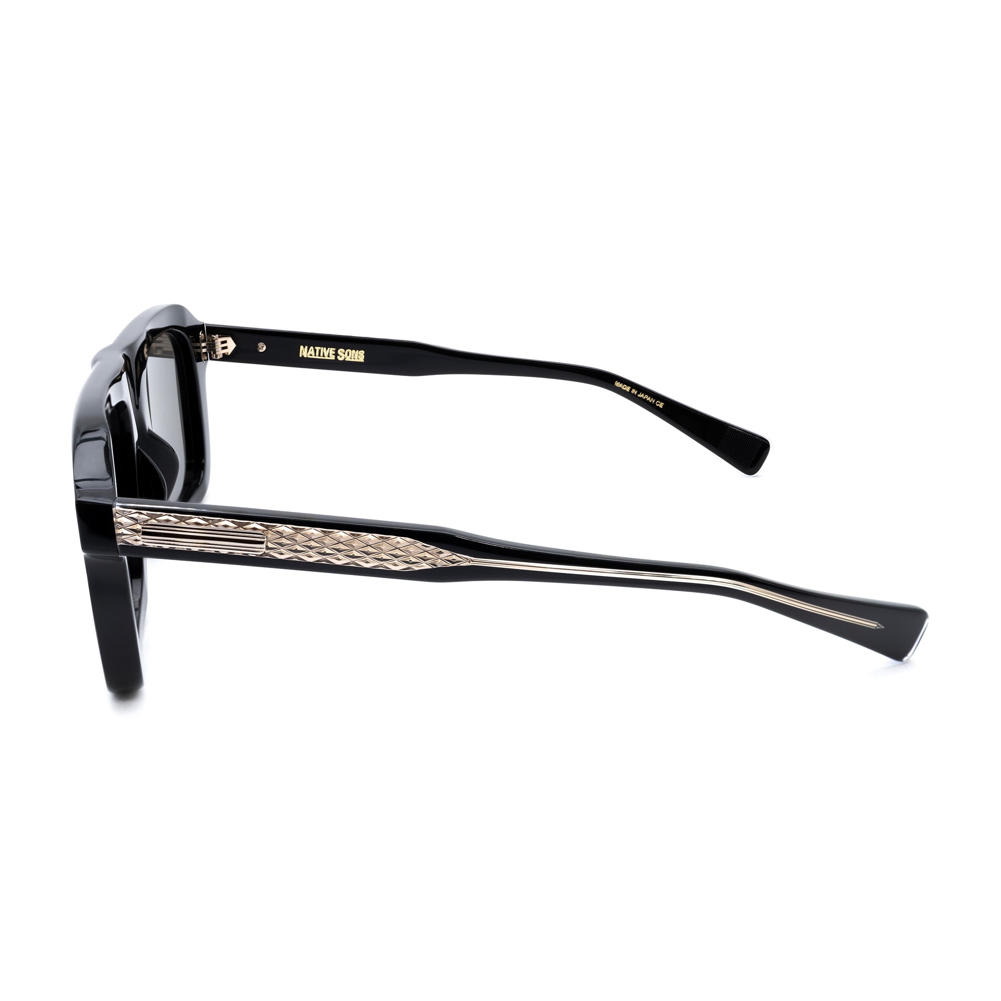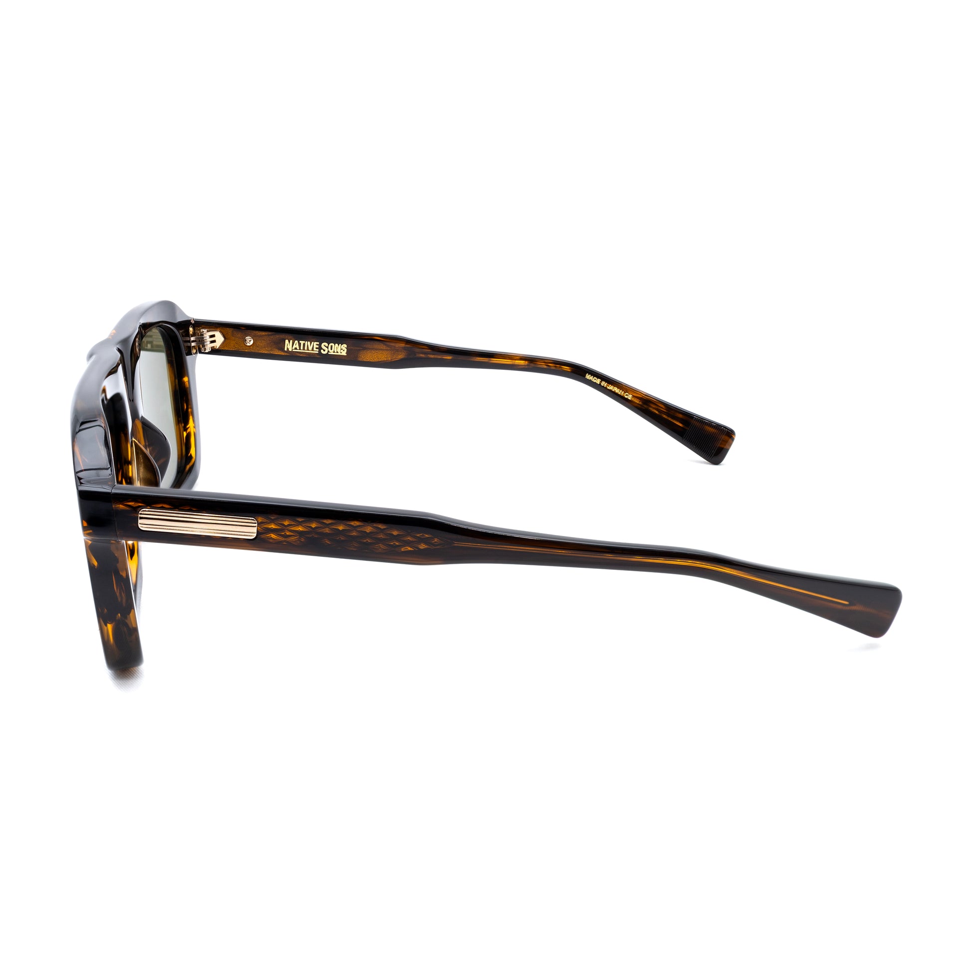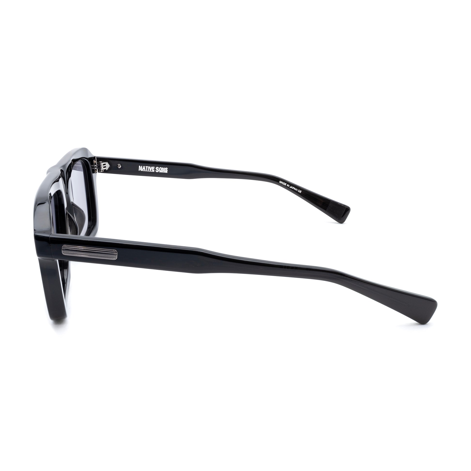 The temple squares back and tapers thinner just before the ear position and ends in a rounded square tip.