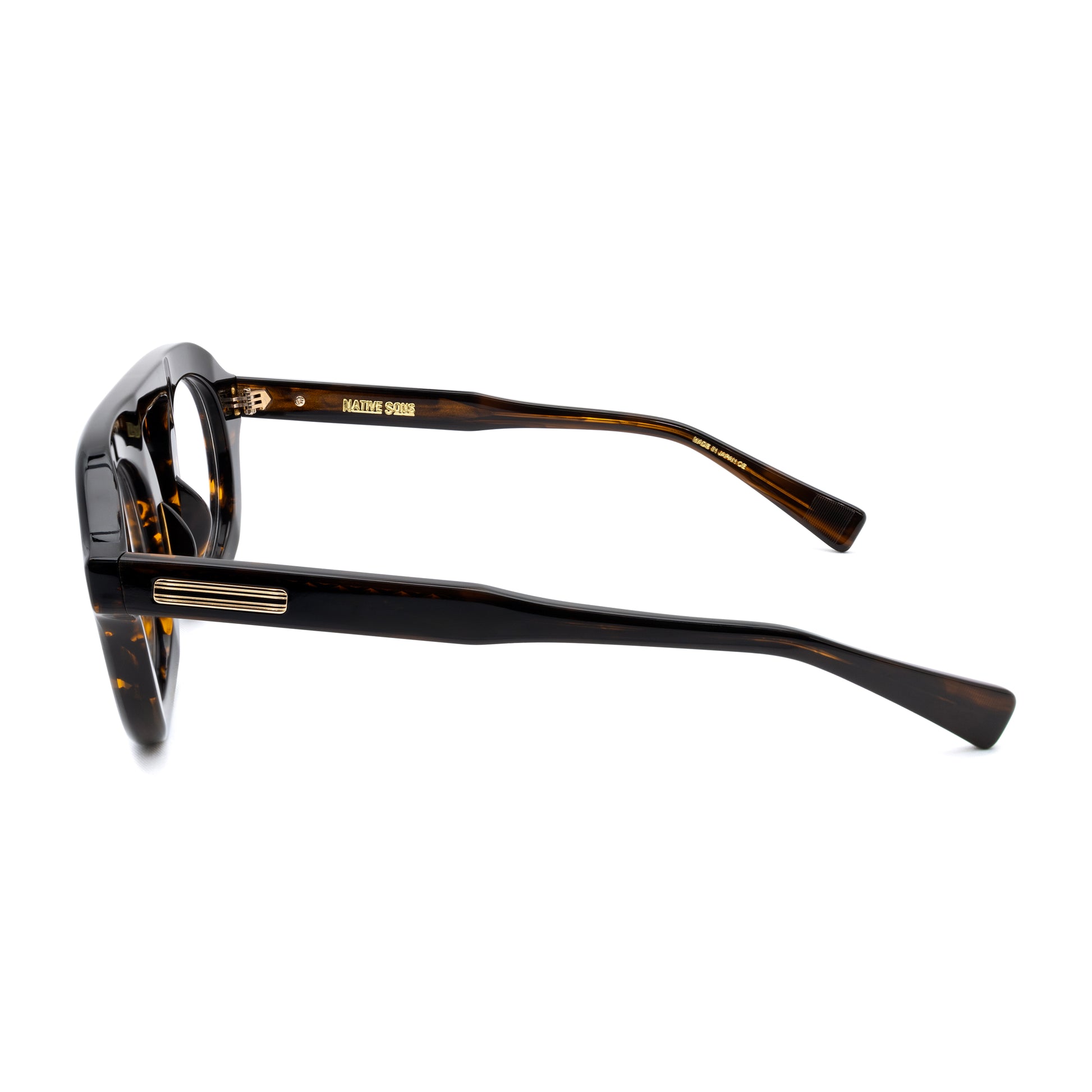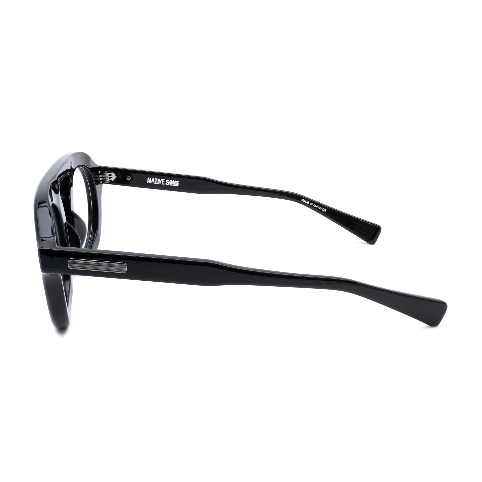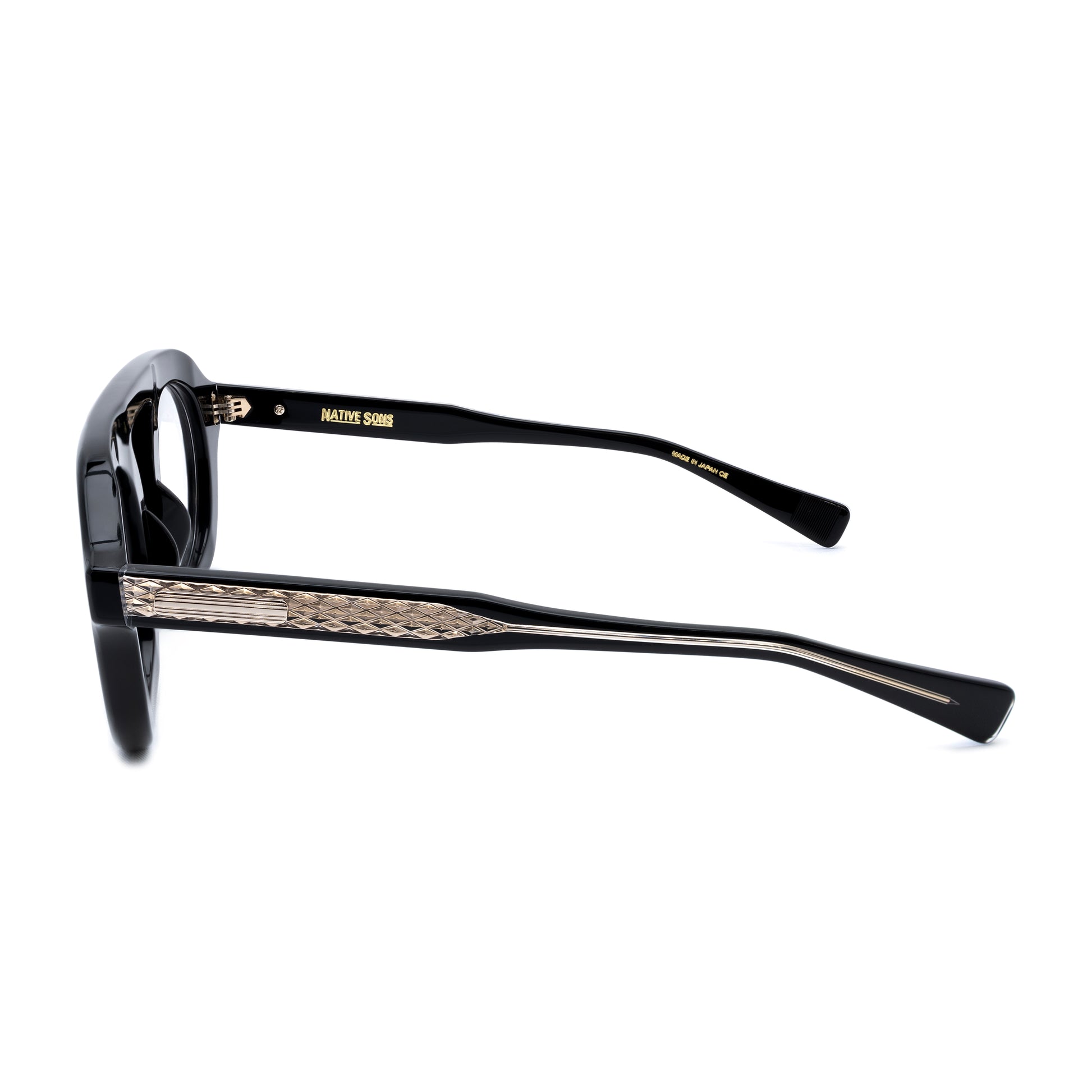 The temple squares back and tapers thinner just before the ear position and ends in a rounded square tip.